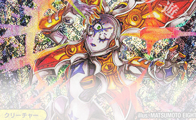また、<聖カオスマントラ> が場にいる間は相手のクリーチャーは出たターンに攻撃できなくなるので、早期に着地した<ドラン・ゴル・ゲルス|豪龍の記憶>などから前もって「ニンジャ・チェンジ」 しておくことで強力なメタクリーチャーとしても活躍してくれます。