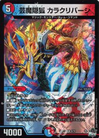墓地肥やし・デッキ圧縮・追加打点枠です。<芸魔隠狐 カラクリバーシ>や<芸魔龍虎 ディメイジン>、<芸魔温泉!オンセン・ガロウズ|芸魔極楽!ガロウズ・ゴクドラゴン>など多くのクリーチャーが種族にコマンドを持っている為、火のコマンドを出すたびに勝手に墓地が増えていきます。そうすることで<芸魔龍虎 ディメイジン>や<芸魔極楽!ガロウズ・ゴクドラゴン>で使う呪文の選択肢を増やすことができます。