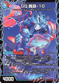 主に裏面の<GQ 舞覇-10>として使用します。出た時に手札交換をすることができ、各ターンに1度火か水のカードを実行するコストを下げることができるので<ブルー・テレポートホール>を使った次のターンに「革命チェンジ」をすることなく直接<芸魔隠狐 カラクリバーシ>を召喚できたりし、デッキの潤滑油として非常に優秀です。