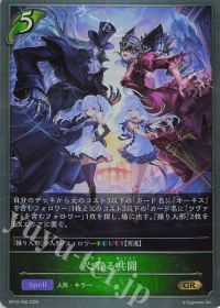 今回の新カードで最も強いカードと言っていいほど強いカードです。効果は操り人形を2枚出し、<操り人形>全てに攻撃力+2と指定攻撃を付与します。今まで操り人形は突進しか持たないため、相手フォロワーをスタンド状態にされると処理出来ない状態や盤面が狭くロックを受ける状況が多くありました。