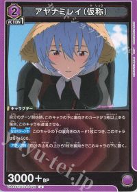 <1-026 アヤナミレイ(仮称)>はアタック時にデッキトップ1枚を自身の下に裏向きで置きます。自ターン中は裏向きのカード1枚につきBP+500パンプアップします。ただ、自分のターン開始時に裏向きのカードが3枚以上の時、退場します。