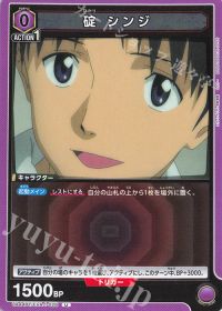<1-030 碇 シンジ>は登場時に裏向きのカード1枚を場外に置きます。また、起動メインでエナジーLにある場合、フロントLに移動させることが出来ます。こちらも<1-039 渚 カヲル>と組み合わせて使用したいカードです。