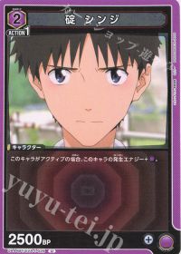 <1-031 碇 シンジ>手札、場外にある場合、このカードの必要エナジーが2減ります。また、自ターン中、場に必要エナジー5以上のキャラがいれば、自身にBP+1000パンプアップします。