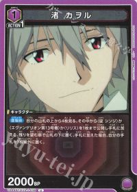 <1-112 渚 カヲル>はスタートデッキのプロモーションカードです。場に1枚もカードがなければ必要エナジーが2減り、0エナジーとして場に出すことが出来ます。