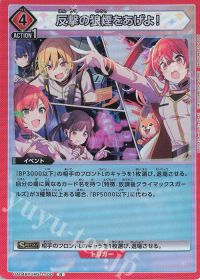 『BP3000以下』の相手のフロントLのキャラを1枚選び、退場させる。自分の場に異なるカード名を持つ[特徴:放課後クライマックスガールズ]が3種類以上ある場合、『BP5000以下』に代わる。