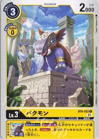 ほかにもウィッチェルニーではなくCSのデジモンでセキュリティから破棄されたとき登場する<BT22レッパモン>やセキュリティを破棄することで1コストでデュナスモンに進化できる<BT22チィリンモン>なども面白いかもしれません。