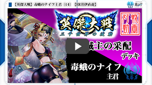 <R尼子経久>の計略『謀聖の領域』を展開し、終盤まで耐えた後、<SR常盤御前>+<N新宮行家>のコンボで一気に攻城を狙うデッキ。