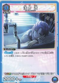 登場時にすでに手札からカードを他に3枚以上使用している場合、ドロー効果が発動します。3枚引いて1枚捨てるため、非常に大きなアドバンテージを得ることができる強力なカードです。この効果をしっかり使いながら手札を切らさないようにするのがポイントです。同じラインに〈浅倉 透〉がある場合、退場時に相手のキャラをレストにできる効果も優秀で、特に〈樋口 円香〉があれば選ばれない効果を持つ<4/1浅倉 透>とのコンボが強力です。