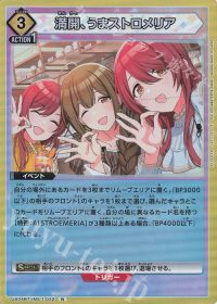 - 自分の場外にあるカードを3枚までリムーブエリアに置く。『BP3000以下』の相手のフロントLのキャラを1枚まで選び、選んだキャラとこのカードをリムーブエリアに置く。自分の場に異なるカード名を持つ[特徴:ALSTROEMERIA]が3種類以上ある場合、『BP4000以下』に代わる