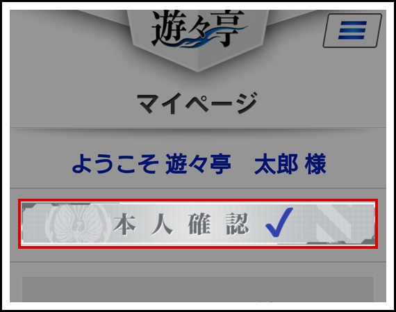 遊々亭メンバー様なら「マイページ」からもご覧いただけます。画面に『認証が完了しました』と表示されたら完了です。